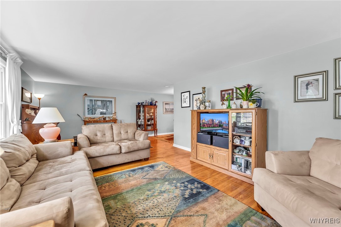 Picture yourself entering through the backdoor into a spacious mudroom to place your belongings. Next, warming by a cozy, brick hearth fireplace in the massive gathering room overlooking the well tended and established gardens in the backyard. Then, spreading out over 1800 sq ft of functional and beautiful living space where daily life and entertaining are a breeze. Finally, calling this generous lot in the Town of Tonawanda, in the middle of a quiet street, with spacious frontage your new home.