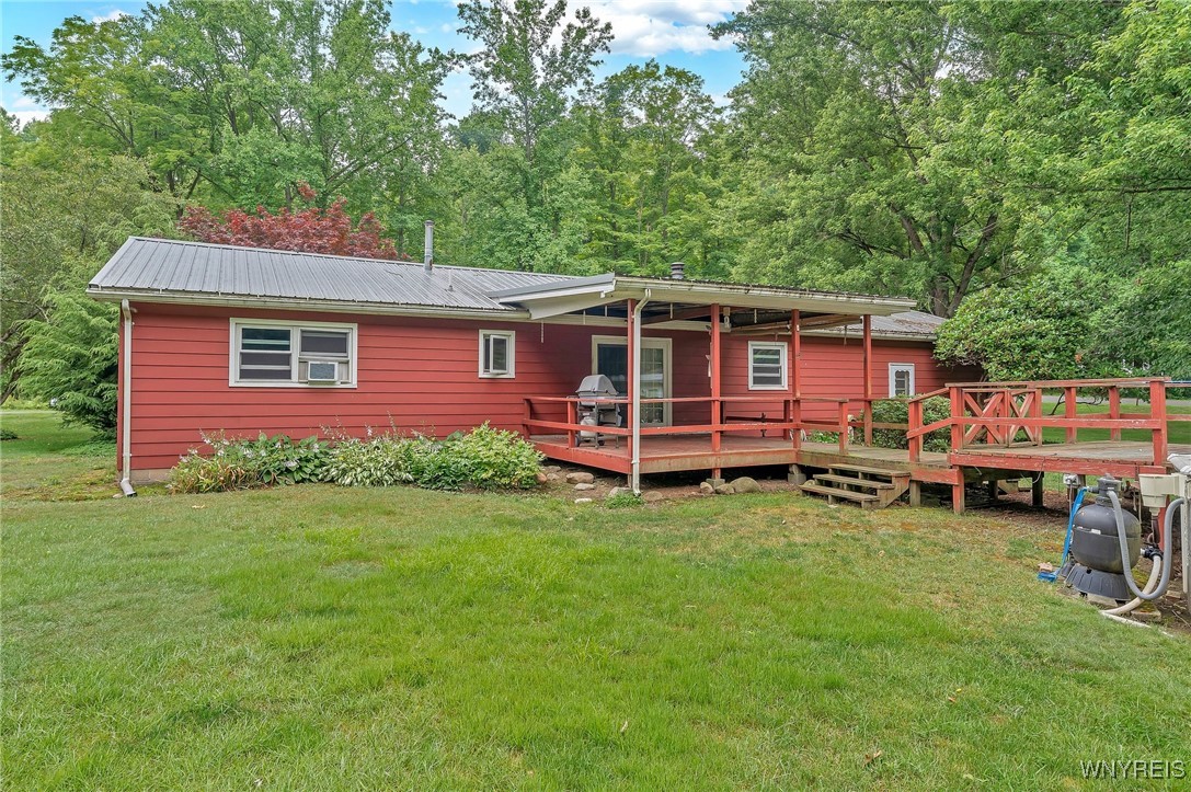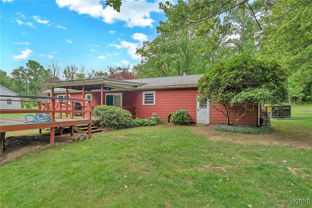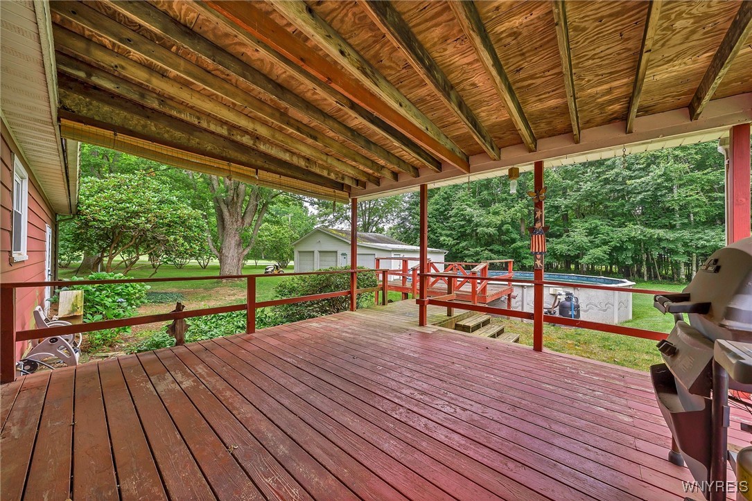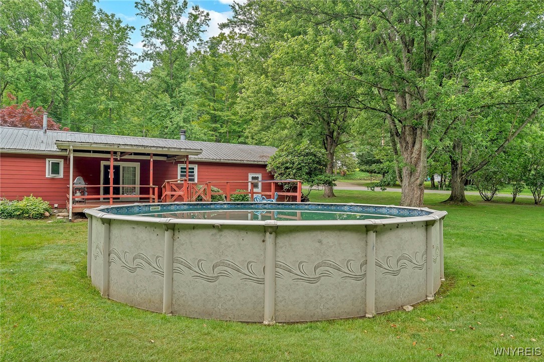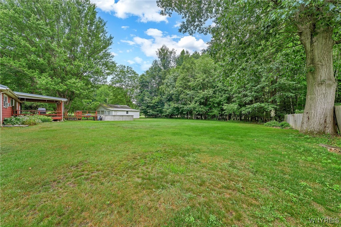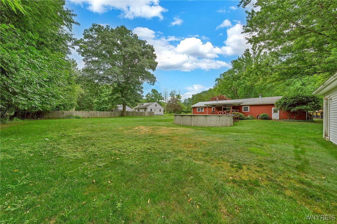 11070 Fairview Dr.:The Estate of the original owner, offers this 3 bedroom Ranch style home on almost 1 acre of land. From the front porch you enter into the large bright living room with hardwood floors that are found throughout, a wood burning fireplace with mantel and custom built shelves. The formal dining room opens to the kitchen with all appliances, and offers access to the covered back patio deck and above ground pool. The hallway leads you to the 3 good sized bedrooms and large bathroom with loads of counter top space, cabinet storage and double sinks. From the kitchen is access to the attached 2 car garage and leads you to the full basement with laundry area, storage room and separate workshop. Outside a detached vinyl sided 3 bay car garage. Lots of potential in this solid well built home. Negotiations begin 7/21/25.
