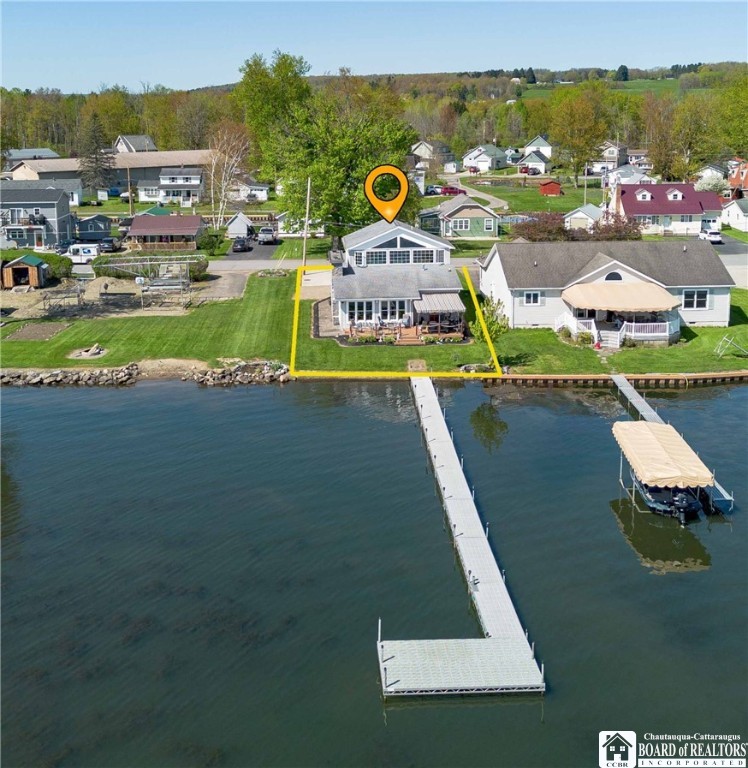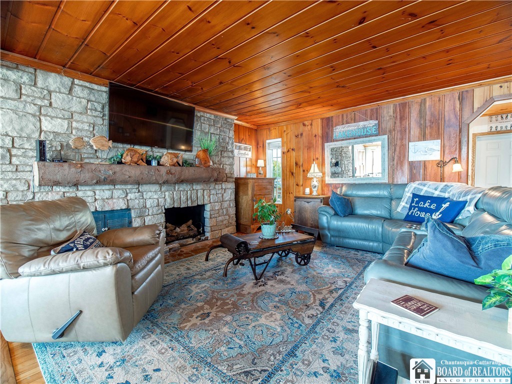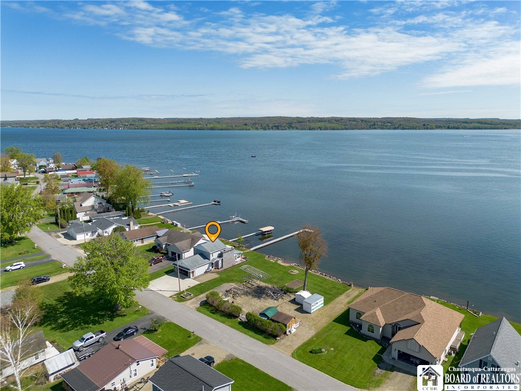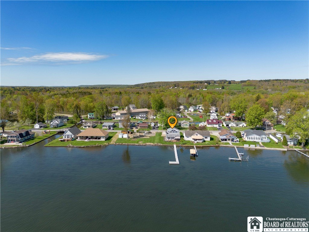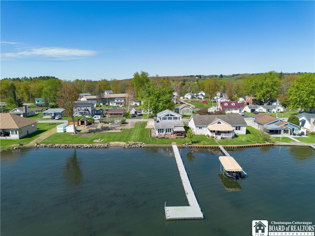 Discover the allure of lakeside living in this stunning 2bedroom, 2-bathroom lake house, where elegance meets comfort in a picturesque setting. Situated along the serene shores of Chautauqua Lake (40'x105'), this maintenance free gem offers a perfect blend of luxury and leisure, making it an ideal retreat for relaxation and recreation. Step into a welcoming foyer complete with a stylish wet bar, setting the stage for entertaining guests or enjoying a quiet evening at home. The spacious open concept living area is adorned w/two beautiful gas fireplaces, providing warmth and ambiance while offering uninterrupted views of the glistening lake. Your personal sanctuary awaits in the expansive primary bedroom suite, which boasts breathtaking lake view, and a generous walk-in closet. Enjoy the convenience of an attached 2car garage, concrete driveway, and stamped concrete sidewalk leading out to your partially covered (awning) back deck. Located within walking distance to the park, and a short drive to all amenities (restaurants, shops, marinas, Chautauqua Institution, Bemus Point & much more). This exquisite lake house is a true sanctuary, offering a harmonious blend of luxury and natural beauty. Whether you seek a year-round residence or a weekend getaway, this home promises an unparalleled lifestyle by the water.
