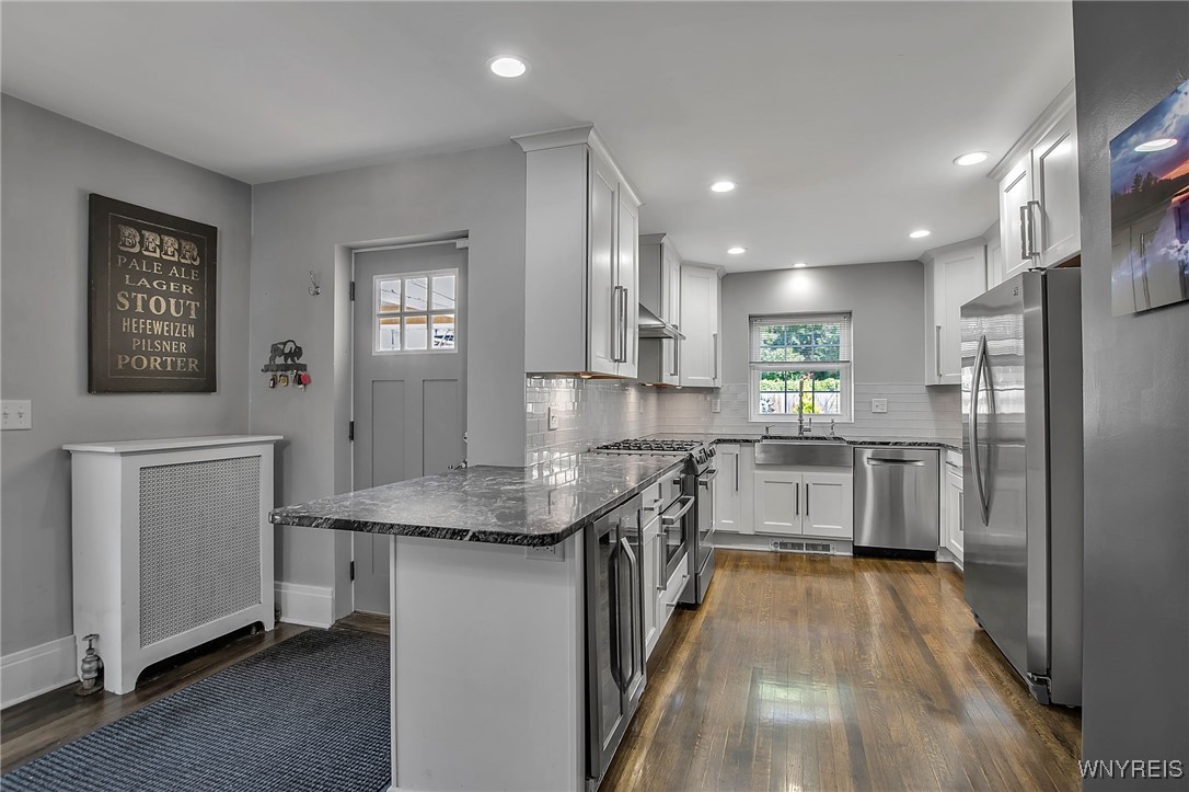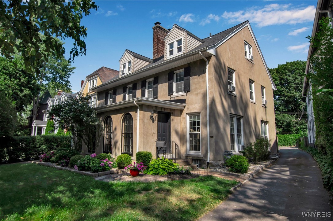 Welcome to historic Linwood Avenue, where timeless architecture meets modern luxury. Designed by renowned architect Dwayne Lyman in his signature Italianate style, this remarkable two-family home offers a rare combination of elegance, functionality, and income potential. Perfect for an owner-occupant, the expansive three-story primary residence features gleaming hardwood floors, stainless steel appliances, granite countertops, abundant natural light, and recessed lighting throughout. With three bedrooms, an office, 2.5 bathrooms, in-unit laundry, and a stunning en suite primary, every detail has been thoughtfully curated. Mini-split systems keep the home comfortable in warmer months, while the layout provides the comfort and feel of a single-family residence. The second three-story unit mirrors the charm, offering three bedrooms and two full bathrooms, including a Jack & Jill bath on the second floor and a private en suite on the third. Hardwood floors, generous natural light, and spacious living areas make it equally inviting. Both units enjoy private outdoor spaces, ample parking, and separate basements for storage. Outside, vibrant landscaping, newer windows, and a 10-year-young roof add to the appeal. With the tenant-occupied unit generating $2,075 per month, this property not only delivers exceptional living but also offers a strong income stream to help offset your mortgage or serve as a high-end investment in one of Buffalo’s most sought-after neighborhoods. *Open House Wednesday 8/27 5:30-7:30. Open House Saturday 8/30 11am-1pm.*