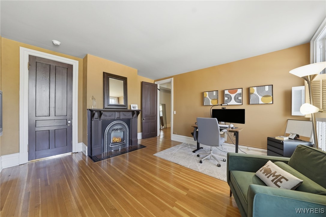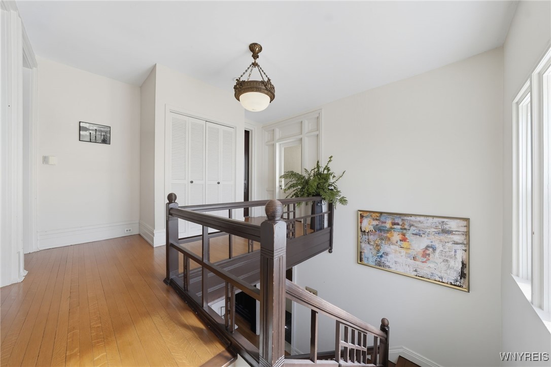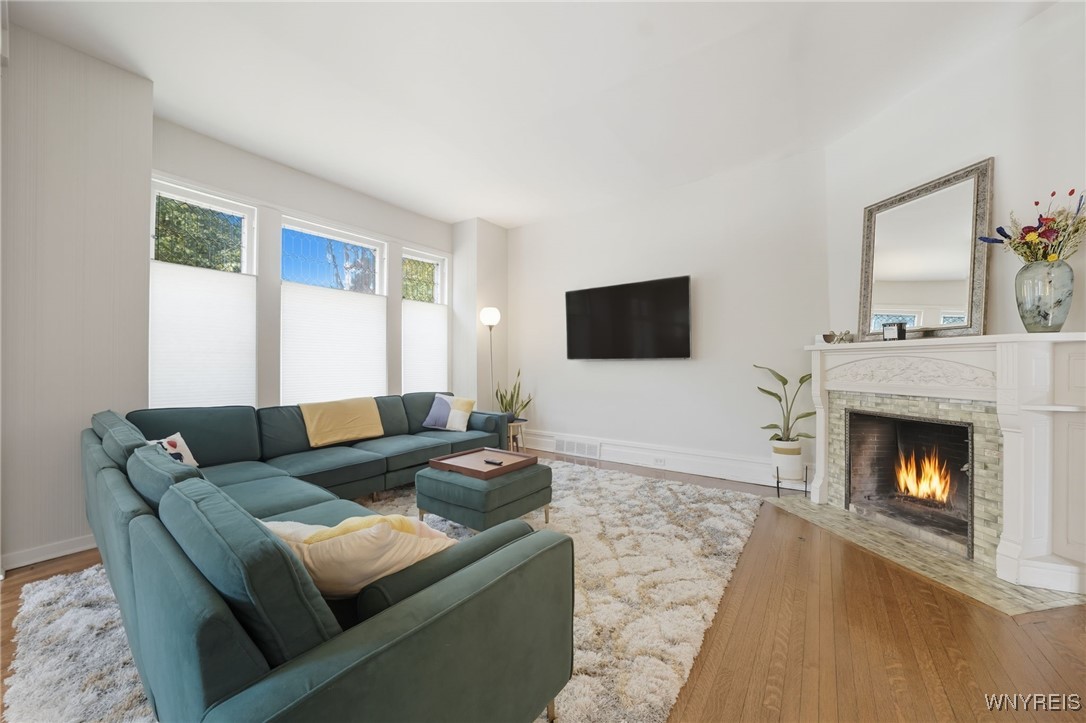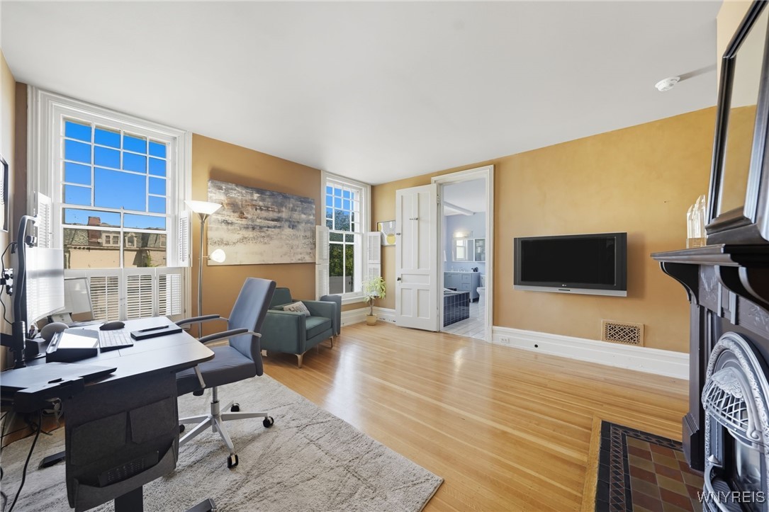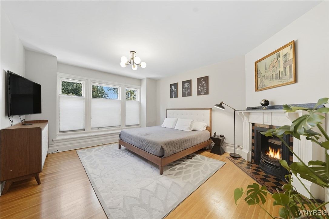 59 Linwood Ave: Owner being relocated after making almost $100k of improvements. Owners unit offerings 3 floors with over 3,000 sq feet of living space with a 2+ car attached garage. The grand foyer finds one of the 5 decorative fireplaces and beams with natural light from windows shining above the grand staircase. Large living room, and dining room both with their own fireplaces and beautiful hardwood floors. A butlers pantry and large updated kitchen and completely updated 1/2 bathroom complete the first floor. 2 staircases to the second level that offers a large master bedroom with private office/den, 2nd floor laundry and 2 additional bedrooms. The third floor finds 2 more bedrooms a second full bathroom and large unfinished area with cathedral ceilings that is ready to be finished off. The second unit with its own 1 car detached garage is completely updated has 1 bedroom, living room, kitchen with all new appliances, in unit laundry and updated bath, currently rented for $1,550.00 Completely fenced in back yard with a private oasis Japanese inspired garden.Located in the Linwood preservation district this property is close to the Medical campus and to all downtown Buffalo amenities. Virtual floor plan available.