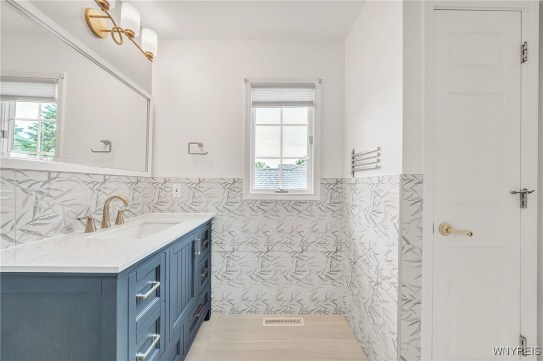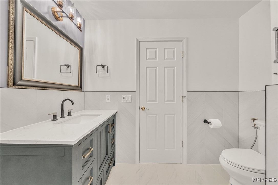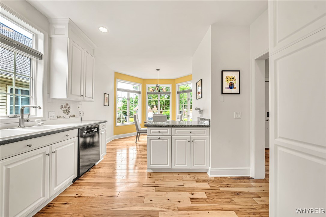 The bright and open kitchen includes Corian countertops, granite peninsula, tile backsplash, hardwood floors, transom windows, recessed lighting, and a charming eat-in area. Upstairs, a large loft area provides flexible space and multiple uses. Both 2nd floor bedrooms are spacious and feature fully-renovated, private en-suite baths.Additional highlights of the home include: 1st floor laundry, finished basement rec room, and well-functioning mechanicals, including new heating/cooling system.