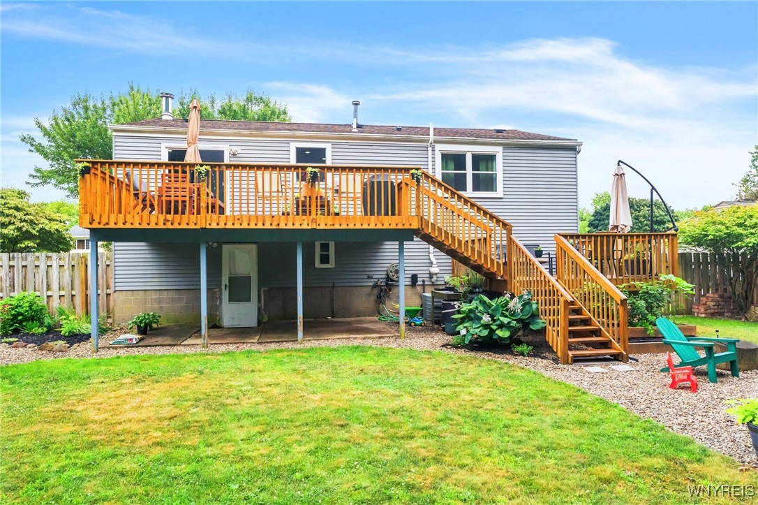 Welcome to 7052 Waring Circle - This move-in ready 3-bedroom, 1.5-bath raised ranch offers comfort, style, and outdoor serenity. Thoughtfully updated throughout, the home features a bright updated kitchen with shaker cabinets, farmhouse sink, concrete countertops, recessed lighting and luxury laminate flooring throughout - perfect for everyday living and entertaining. The spacious family room provides the perfect place to relax, unwind, or gather with loved ones. Enjoy the outdoors in your fully fenced yard with two-tiered deck, private patio, garden and beautifully landscaped flower beds with an irrigation system that backs to peaceful woods—an ideal retreat. Major upgrades include updated kitchen, windows, HVAC, and a tankless water heater for year-round efficiency and comfort. The spacious layout provides flexibility for a variety of lifestyles. With modern touches throughout and no detail overlooked, this home is ready to impress both inside and out. Sellers have set an offer deadline of Monday, July 14th at Noon. No escalation clauses.