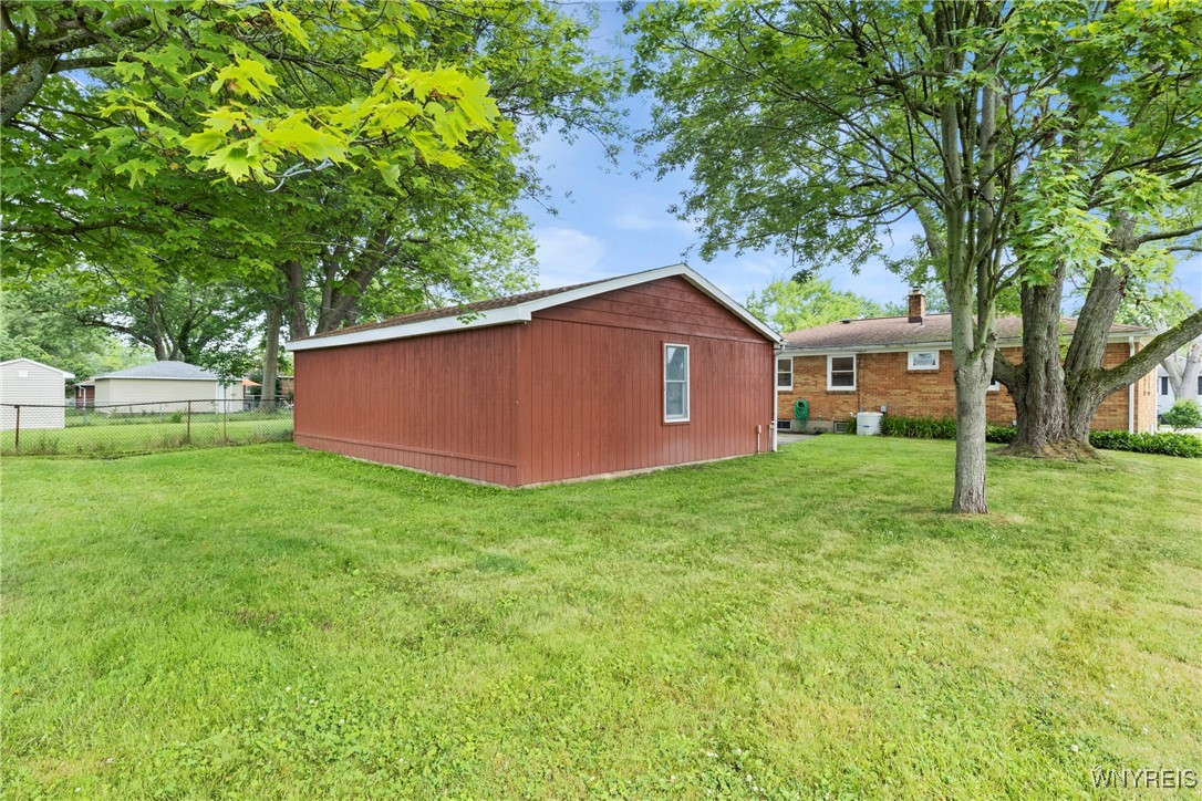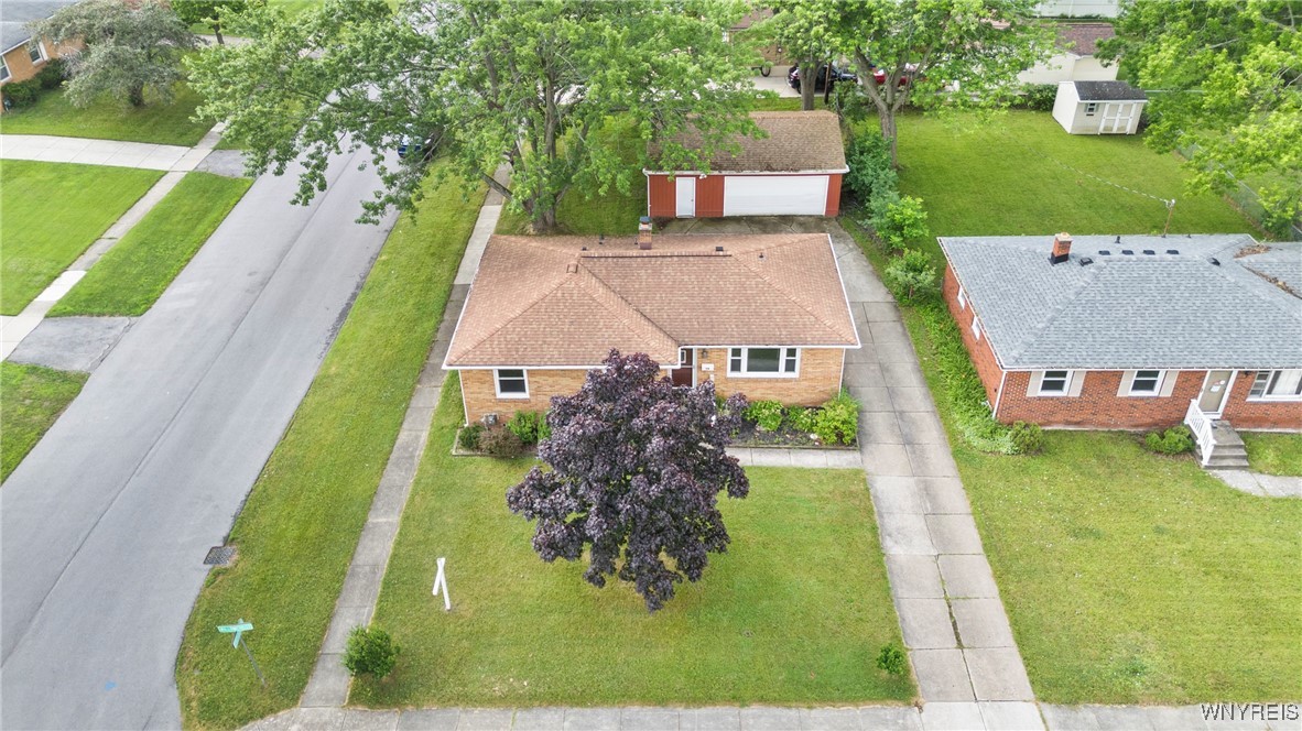 OPEN HOUSE Sunday, Jul 27, 11:00AM - 1:00PM. Don’t miss this lovely 3-bedroom, 2-bath all-brick ranch nestled on a spacious corner lot in the highly sought-after West Seneca School District. Step inside to a bright and freshly painted living room that flows into a generous eat-in kitchen with ample counter space—perfect for both everyday living and entertaining. All three bedrooms are comfortably sized and feature beautiful hardwood floors, while a full bath completes the main level. Downstairs, you'll find a dry, high-ceiling basement with partially finished rooms and a full bathroom—ideal for a rec room, home office, or additional living space. Outside, enjoy a a large backyard and an oversized garage—perfect for a workshop, hobby space, or extra storage. Worth noting: The mechanics are solid, the roof is 9 years young, 150 amp electric service, and there's central air conditioning.