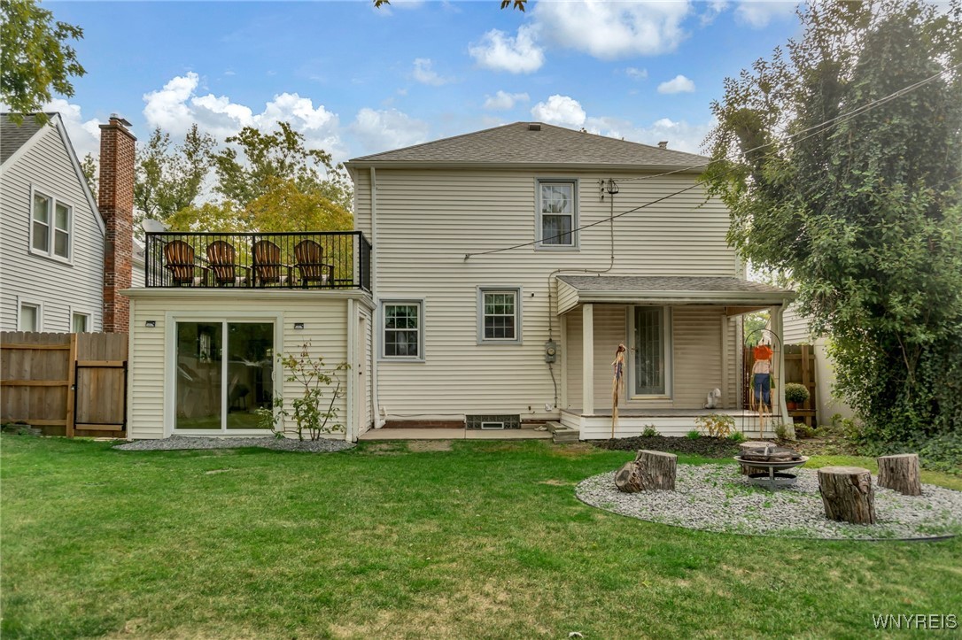 778 Starin Ave; Nicely updated 3 bedroom 1 full and 1 half bath home. The front door leads you though the foyer with a closet into the large living room with gas fireplace and formal dining room both with newly laid hardwood floors. Large eat in kitchen with stove, refrigerator and dishwasher. The second level with all fresh carpet finds 3 bedrooms and full bathrooms. Here you will also find a door to the second story balcony. The finished basement features a bar, half bathroom and family room with faux fireplace and mantel. The attached garage (currently used a home gym) has a sliding glass door leading to the outside. The dining room has a second door that allows you another access to the back covered patio and generously sized back yard. Many improvements and updates that include replacement windows throughout and a roof approx 5 yrs old.