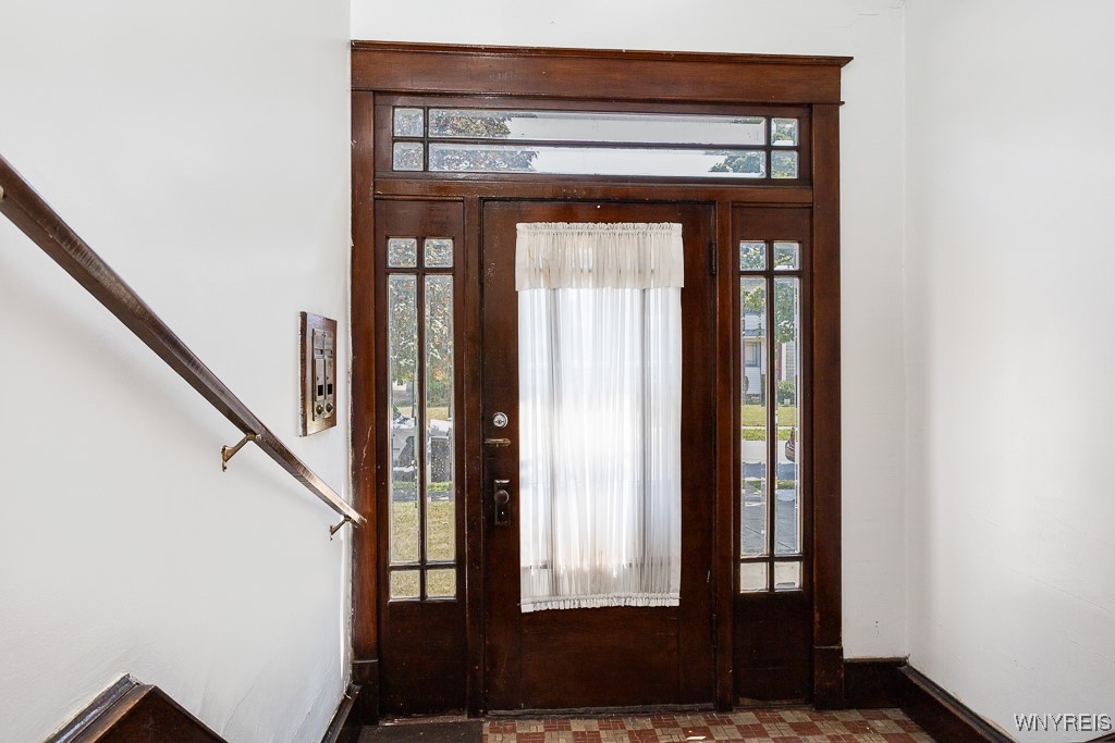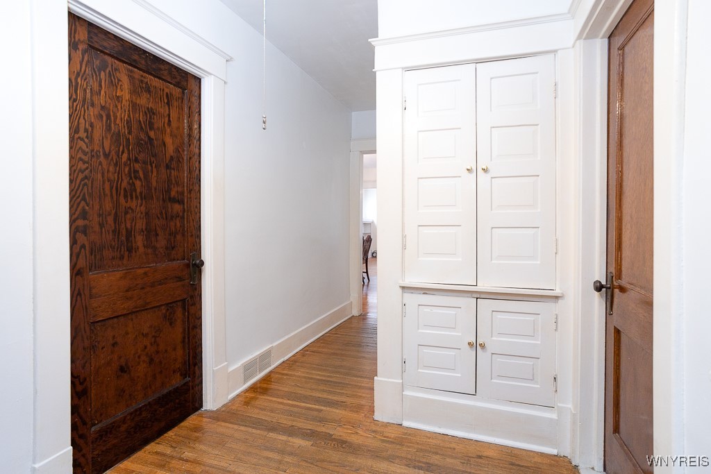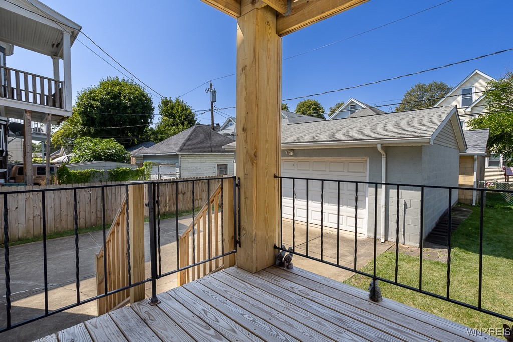 Located in the heart of North Buffalo’s popular Hertel Avenue entertainment district, this classic 3/3 double offers both character and opportunity. The exterior features maintenance-free siding, a brick front, a concrete driveway, an additional parking pad, and a two-car garage. The welcoming entry is defined by its elegant door, framed with side lights and a transom window that invites natural light inside. The lower unit features hardwood floors throughout the living room, den, dining room, and three bedrooms. The living room is enhanced by built-in bookshelves and leaded glass windows, flowing seamlessly into the den. The kitchen features an abundance of cabinetry and counter space, along with tile flooring and a tile backsplash. The upper unit offers a living room, dining room, kitchen, three bedrooms, and a full bath, with a private balcony adding to its charm. Hardwood floors run throughout the main living areas and bedrooms. Both units also enjoy newly built back porches, ideal for relaxing ('24). Additional highlights include a full walk-up attic, divided basement storage, glass block windows, updated electrical panels, separate utilities, and luxury vinyl plank in the staircase ('24). With solid bones, timeless details, and a prime location near Hertel Avenue’s shops and restaurants, as well as Delaware Park and the Buffalo Zoo, this home is perfect for an owner-occupant or an investor looking to build equity.