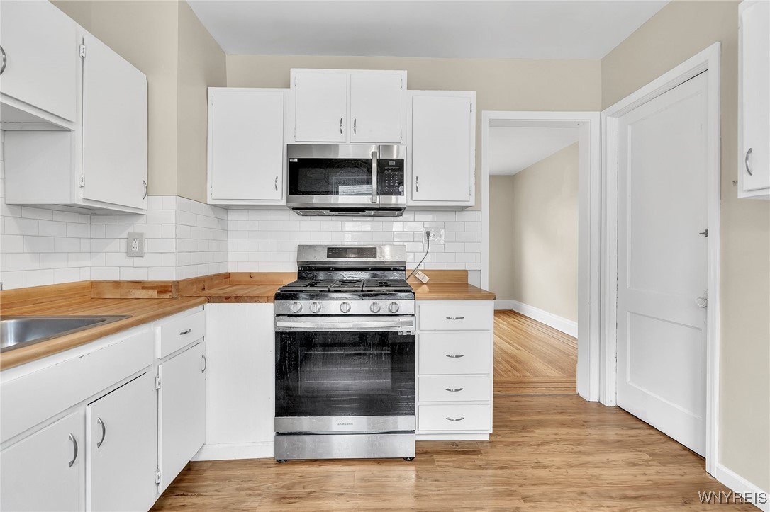 3/3 double in now available in North Buffalo! Situated steps from Hertel Ave. on a quiet one-block street, this home offers a prime location. The roof is a total tear-off, only 2 years old! A long driveway with plenty of parking leads to the partially fenced yard, featuring a one-car detached garage and a bonus covered patio. The upper unit boasts gleaming inlaid hardwood floors, a covered front porch, a spacious living room, a formal dining room, and three bedrooms. Vinyl replacement windows are installed throughout. A full walk-up attic provides excellent storage or potential additional living space. The lower unit, currently rented for $1600/month, includes a large living room with an attached sunroom, three bedrooms, plus an extra room used as an office. This unit also has direct access to the backyard via a small porch. The basement features laundry hookups for both units and two sump pumps to keep it dry.
