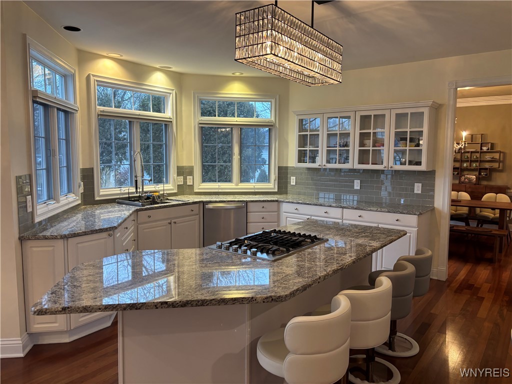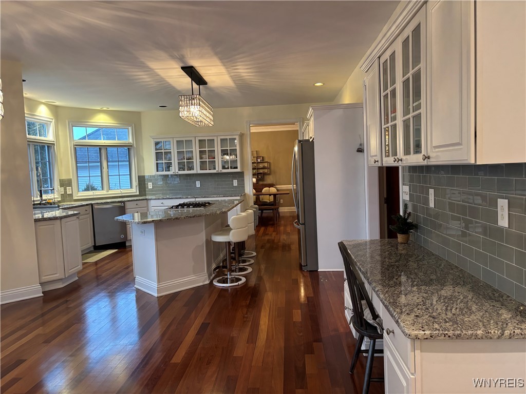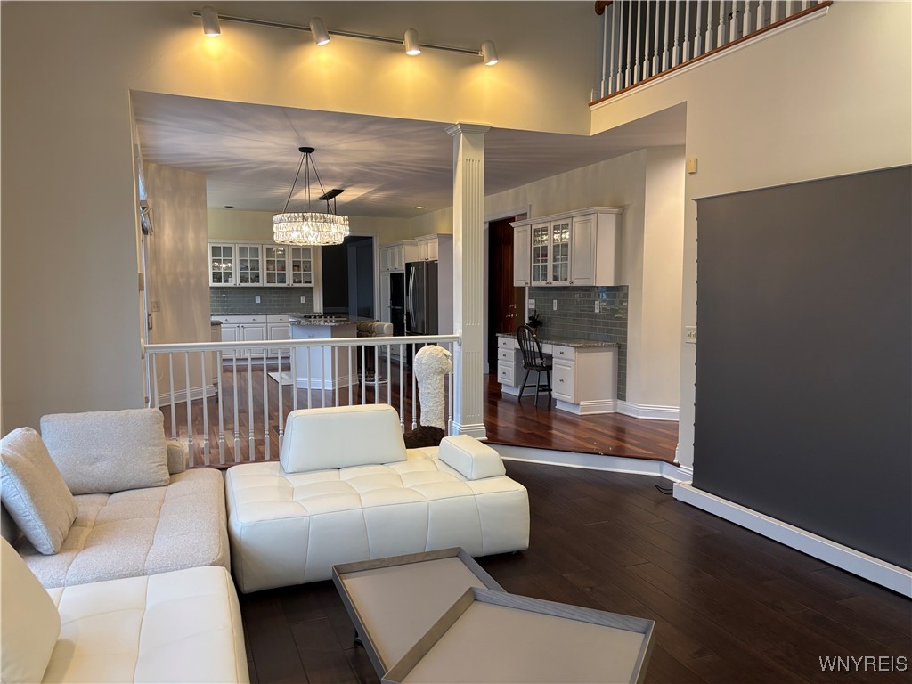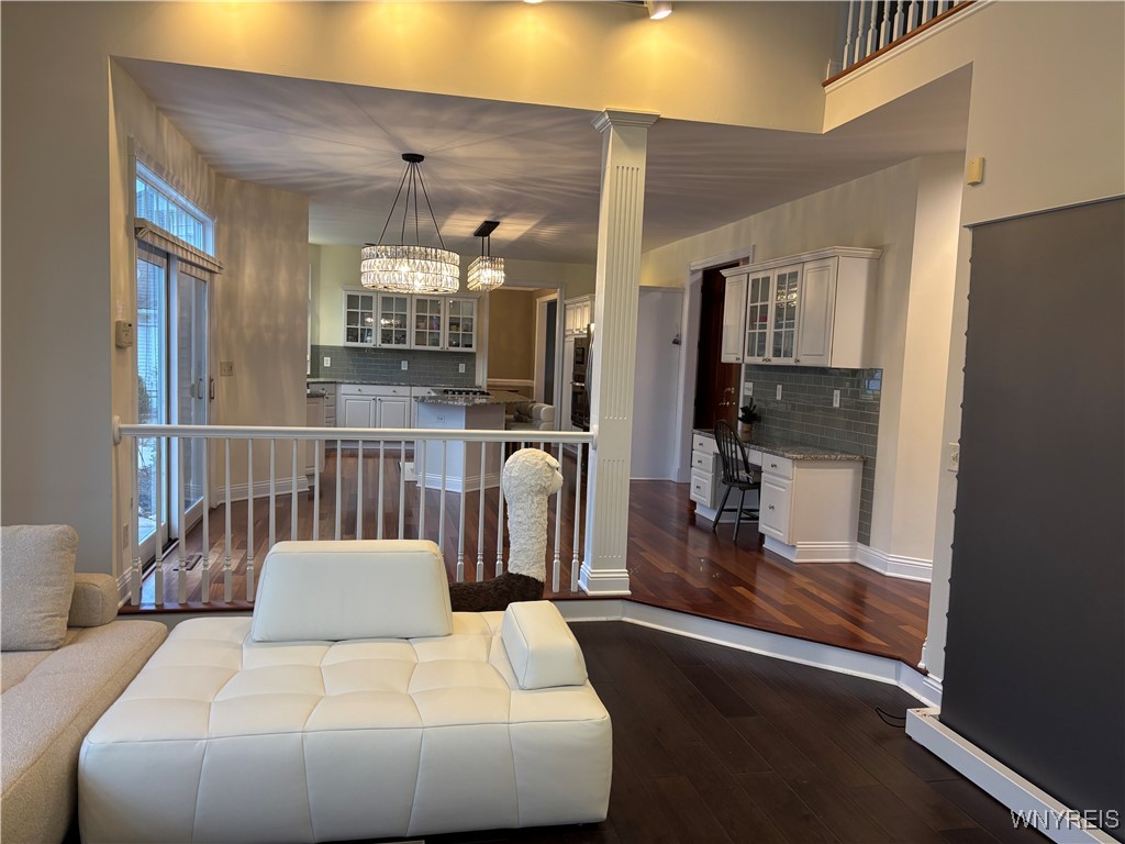 Welcome to Paradise! STUNNING large 4 Bedrooms, 2.5 baths featuring primary suite with walk-in closet, private bath & jacuzzi tub & shower. Gourmet kitchen, all stainless-steel appliances, granite center island breakfast bar, custom cabinetry. Living Room opens to a spacious dining room with Tray ceilings. Den/Office w/built-in bookcases. 1St floor laundry room/mud room. 9-foot ceilings & doors. Spectacular staircase leading to 2nd floor. Great Room features gas fireplace, built-in bookcases & vaulted ceilings. Central-air, security system. Insulated attached 2.5 Car Garage. Beautiful rear yard featuring Saltwater Gunite in-ground Pool, heated W/ waterfall, spa, stamped concrete patio W/ awning, lighting & sprinkler system. Enjoy the back yard setting in the highly desireable Williamsville area.